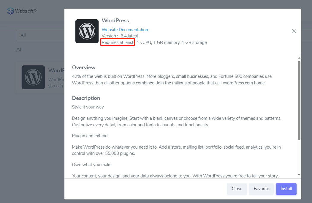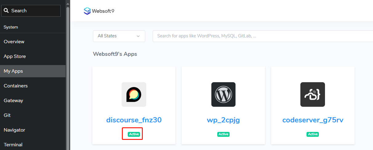 Deploy applications easily from Websoft9 App Store, featuring 200+ templates one-click install application.