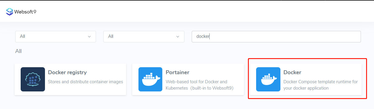 1. Go to the catalog App Runtime > Docker from Websoft9 App Store